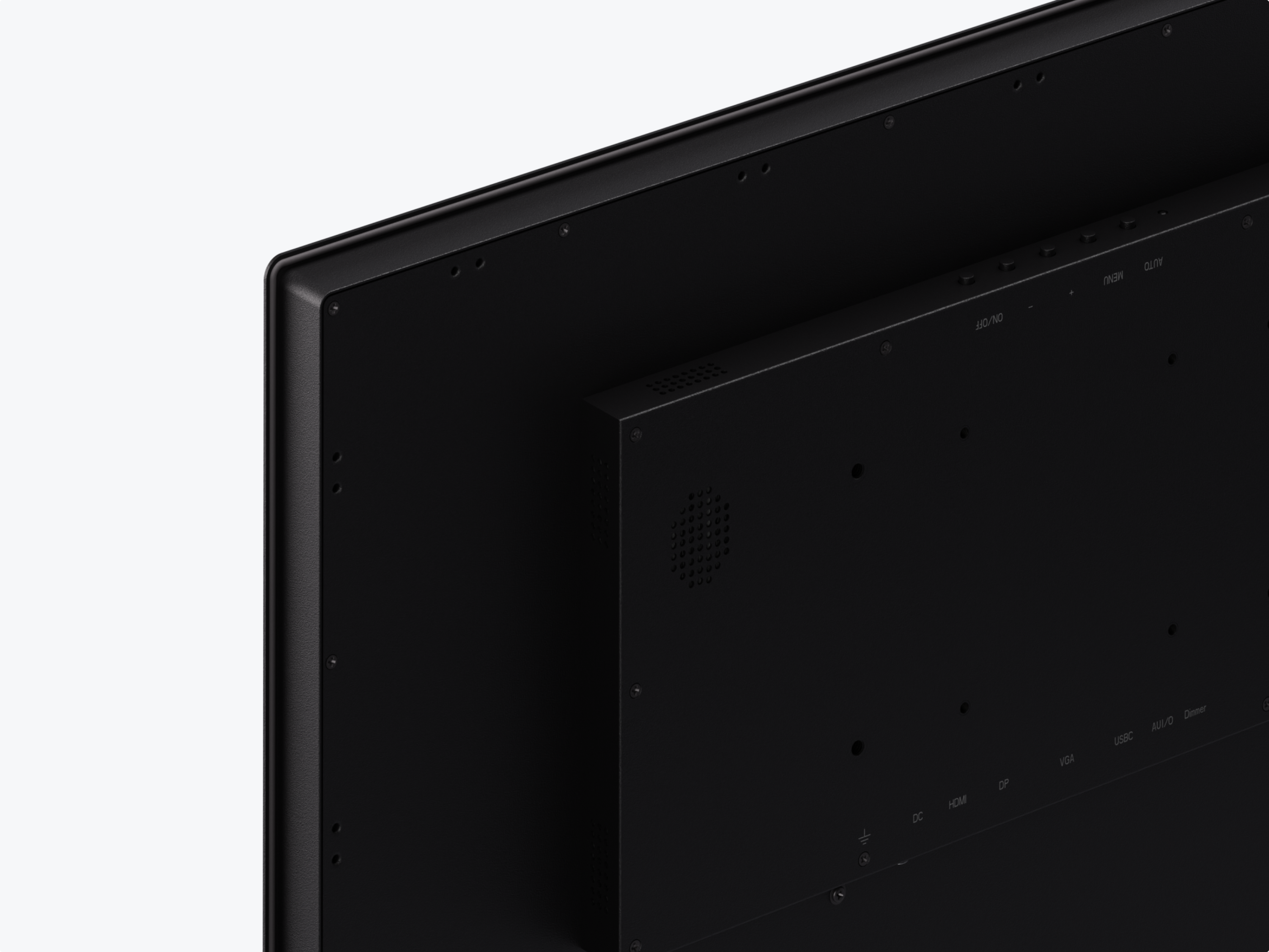 The new series features a molded steel casing that increases structural strength while reducing bezel size for a more space-efficient design. Additional clamp mounting points at the corners distribute stress more evenly, and a thicker mounting strip further reinforces the frame. A step added at the frame edge prevents sealing glue from leaking during installation, ensuring a cleaner fit in enclosures. Infrared and ambient light sensors, which previously required a larger cut-out, are now integrated behind the glass and are barely visible. These improvements make the displays more resilient and give the series a sharper, more modern appearance.